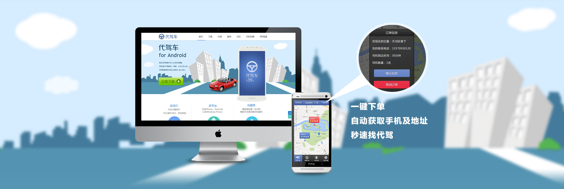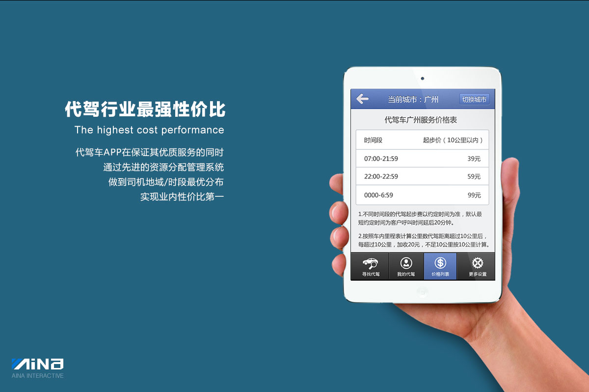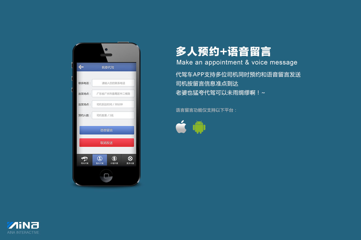 商务应酬or出外远行?艾纳互动联合玖洲网络联合推出代驾车移动APP服务,一键下单、智能定位等优秀的叫车体验让你从此再无后顾之忧~