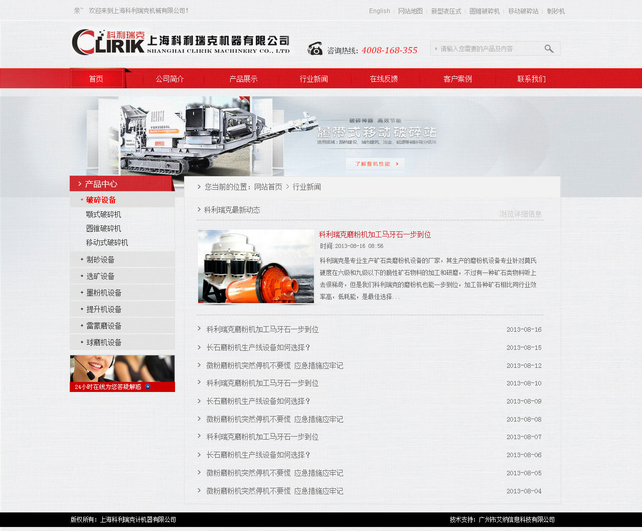 上海科利瑞克计机器有限公司网站设计